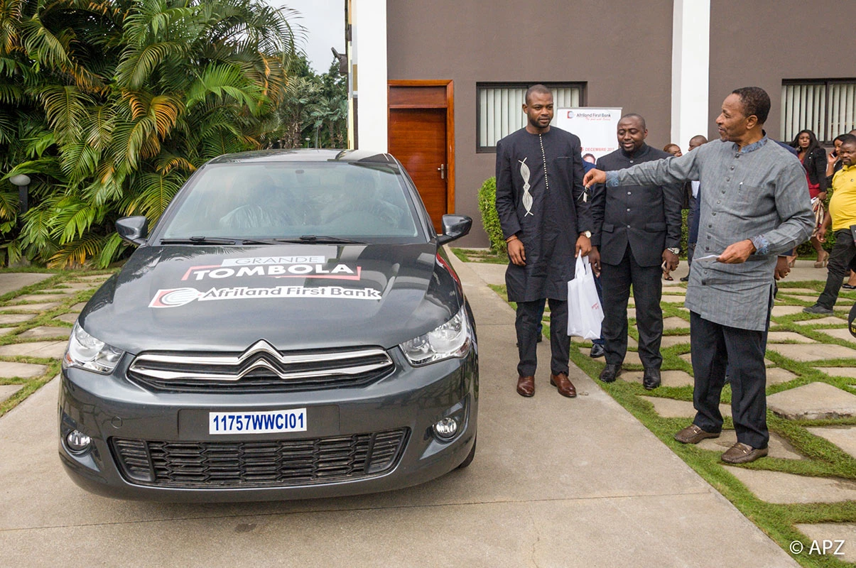Pour réaffirmer sa position de banque de proximité, Afriland First Bank Côte d’Ivoire a entrepris depuis le15 décembre 2016, l'organisation d'une tombola dénommée "Epargne à la First Bank". Cette tombola qui amis en jeu deux super lots : UNE VOITURE et UNE VILLA, a permis de récompenser plusieurs clients pardes lots intermédiaires (réfrigérateur, télévision, micro-onde, ordinateur portable, machine à laver...)